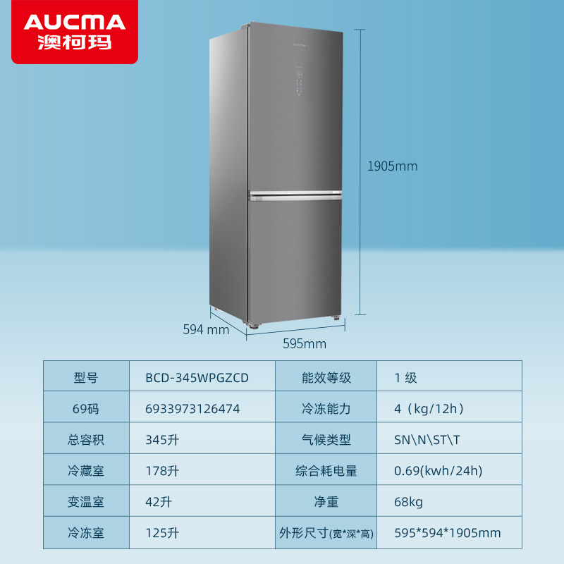 型号:BCD-345WPGZCD(羽砂灰)